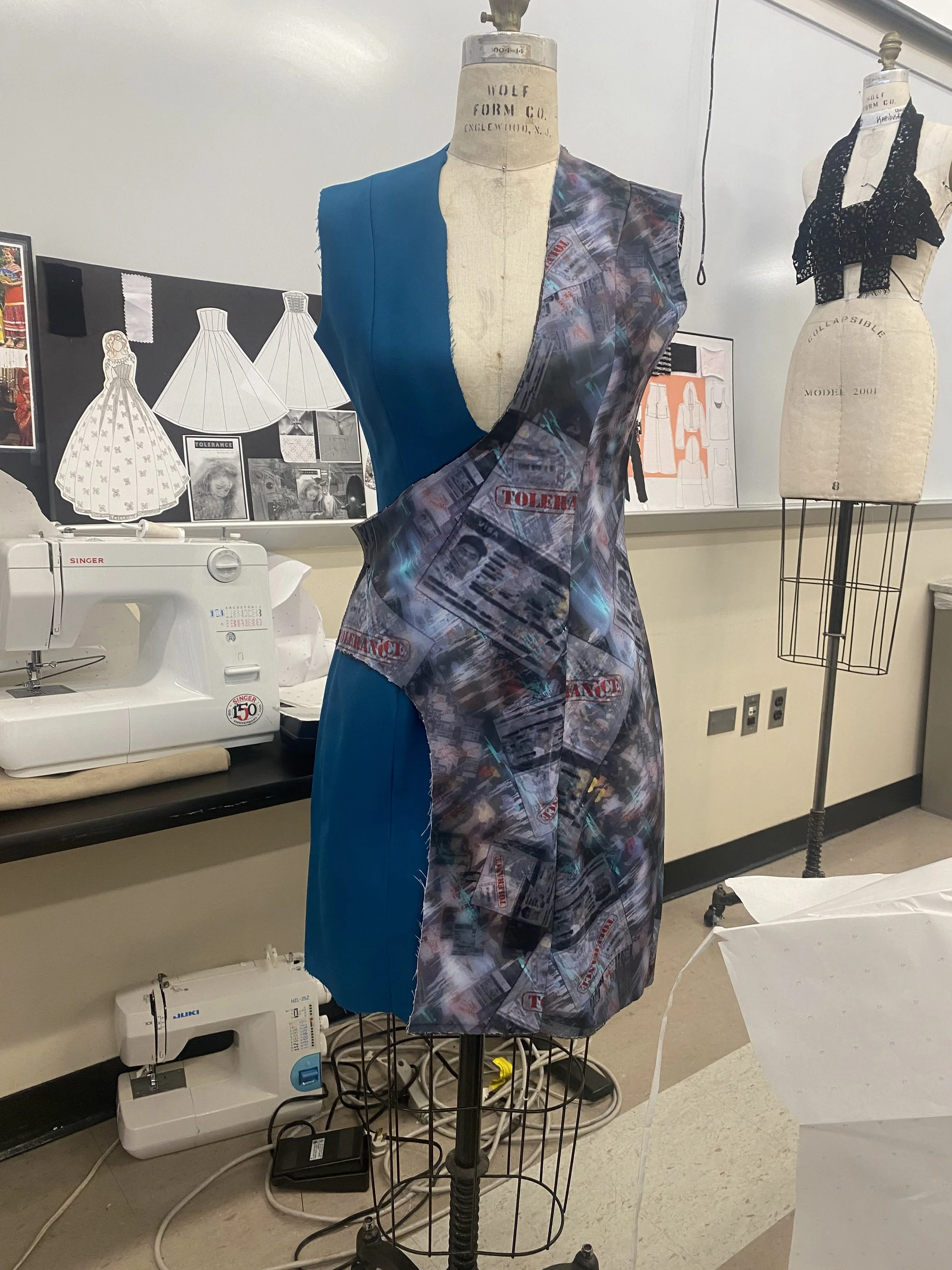 For my womenswear project, I reimagined a passport as a textile print inspired by my experience as an immigrant. The passport, a symbol of movement and belonging, became a visual language across the garments. The pieces reflects the resilience of immigrant communities, their strength, perseverance, and the determination to build a life while carrying home within them.